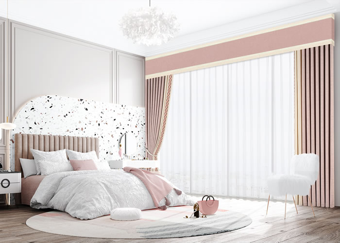 臥室的窗簾在功能上要求有質厚、夠溫馨、隱秘性好,花型建議與床上用品相一致,款式上多見外簾窗紗,里簾一般采用遮光窗簾,色彩不用太花哨,可以讓我們擁有更加健康的睡眠質量。